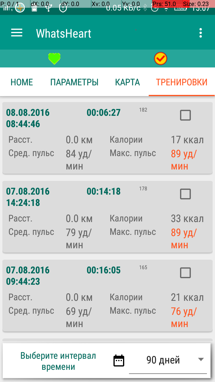 Добавлено всплывающее (pop-up) полупрозрачное окно небольшого размера, в котором отображается текущее значение пульса, а также максимальный пульс с учетом возраста и текущий пульс в процентах от максимального значения.